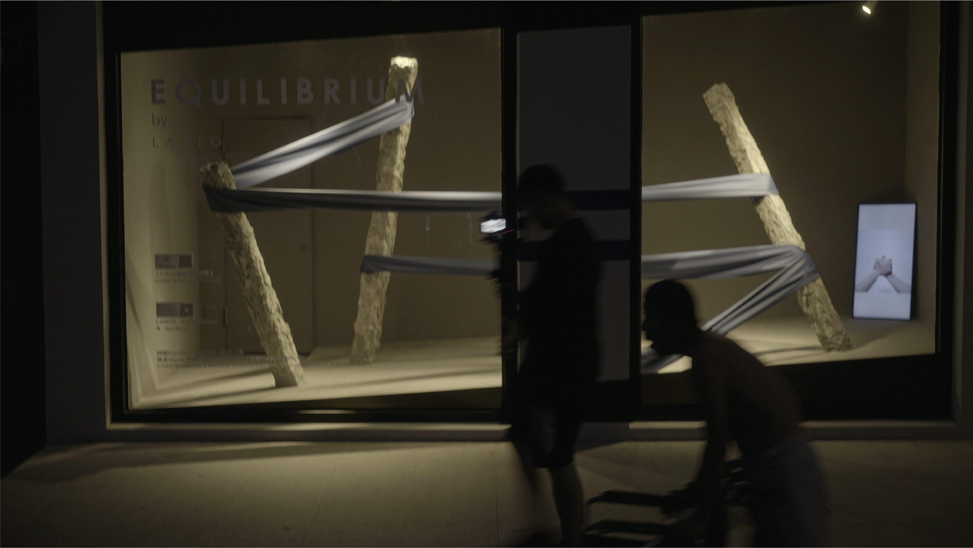 LAMFO cooperated with CHAO Hotel, Beijing to create an interactive window installation based on LAMFO’s first season ideology "EQUILIBRIUM". We tried to explore people's self-cognition and individual identity in different environments, as well as self-balance in this highly refined and fragmented society. Only when the participants stand at the best viewing point can they observe a balanced field of reaction forces between sculpture and fabric. This field leads the participants to feel a loss of control and tension from the multidimensional space. Any attempt to stand off-center will result in a state of being out of focus, and the resulting anxiety and uncertainty reflects the reality of our daily life.
